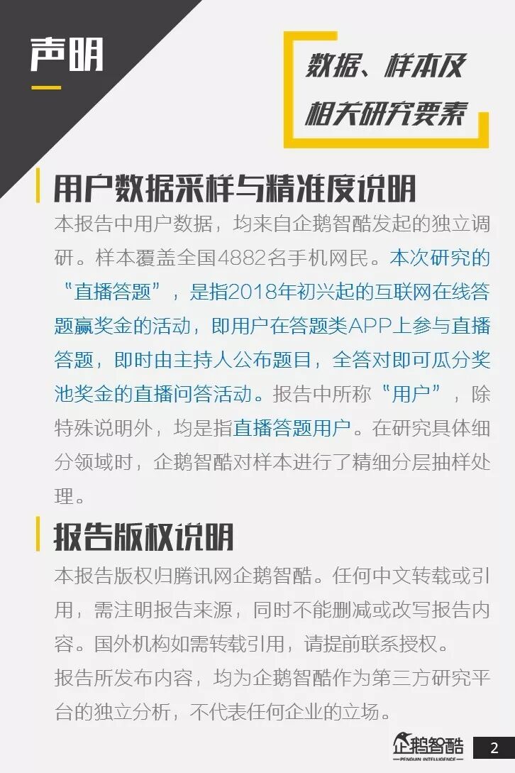 2,直播答題用戶對廣告接受度超過75%,這為產品未來的商業化提供了非常可觀的售賣容量。“以知識帶動廣告認知”是答題平臺和廣告產業,需要快速通過效果資料,向商業市場普及的觀念;